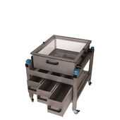 Separating units streamline mass workpiece separation. Manual separation is time-consuming and hinders efficiency. Automatic integration in mass finishing machines is ideal for large-scale small workpiece production, aiding separation on vibrating screens. Suitable for 18+ liter capacity machines.